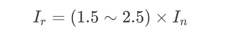通用原則:熔絲額定電流(Ir)按?In?的?1.5–2.5倍?選取