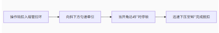 向上托舉熔管至與水平線成70°(斥力彈簧壓縮臨界點(diǎn))